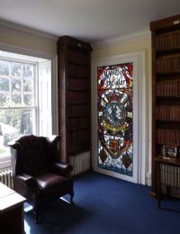 The Priaulx Library's St Aubyn room, where we keep our art, social and ancient history and Guernsey French collections, has always been a sunny and peaceful place to settle down to reading or research. It is even more lovely now, however, as it is flooded with colour from a beautiful stained glass window that has been transferred here from its original home at Kinloss Barracks in Scotland. The window was commissioned in 1984 to commemorate the founding of 'Guernsey's Own' 201 Squadron RAF in 1914.